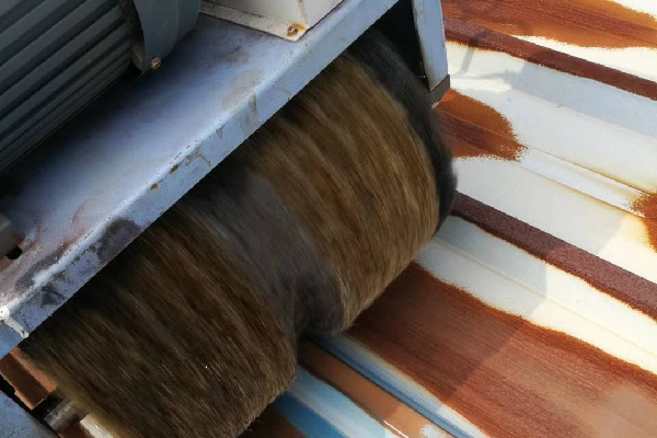 自主研發(fā)專(zhuān)業(yè)彩鋼瓦除銹機(jī),無(wú)死角打磨各型號(hào)彩鋼瓦。